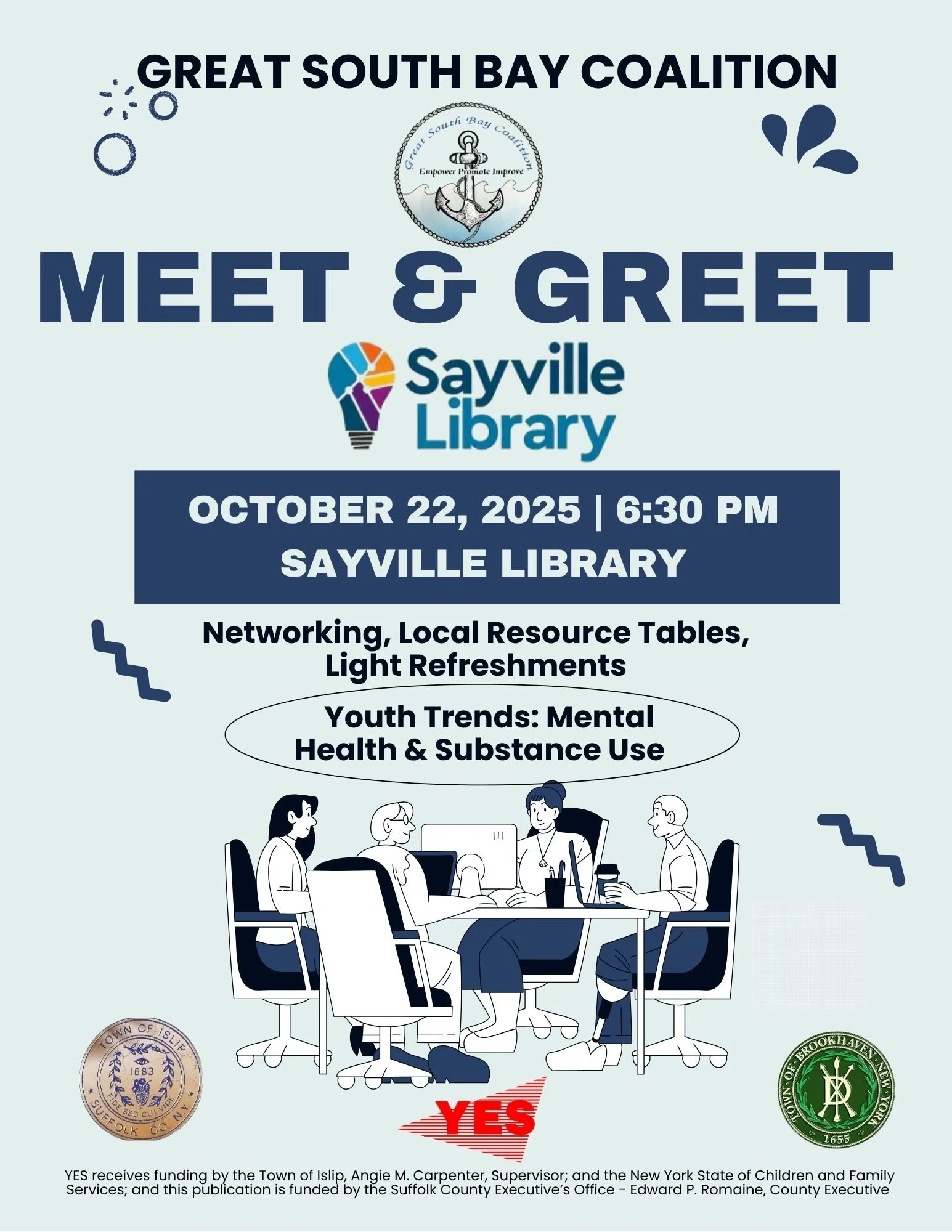 The Great South Bay Coalition was established in 2014 with the mission of promoting mental and physical health initiatives in an effort to reduce youth substance use. In 2018, with the help of our partners at Youth Enrichment Services, SAMHSA awarded our coalition with the Drug-Free Communities (DFC) grant that will provide funding for events in the Bayport-Blue Point and Sayville communities over the next five years. We are always looking to partner with other groups, organizations, and individuals that can build our capacity, and utilize this great funding opportunity in a way that will maximize its impact on the youth in the community. If you are passionate about mental or physical health, or just want to get involved in a community organization, please reach out to us at greatsouthbaycoalition@gmail.com